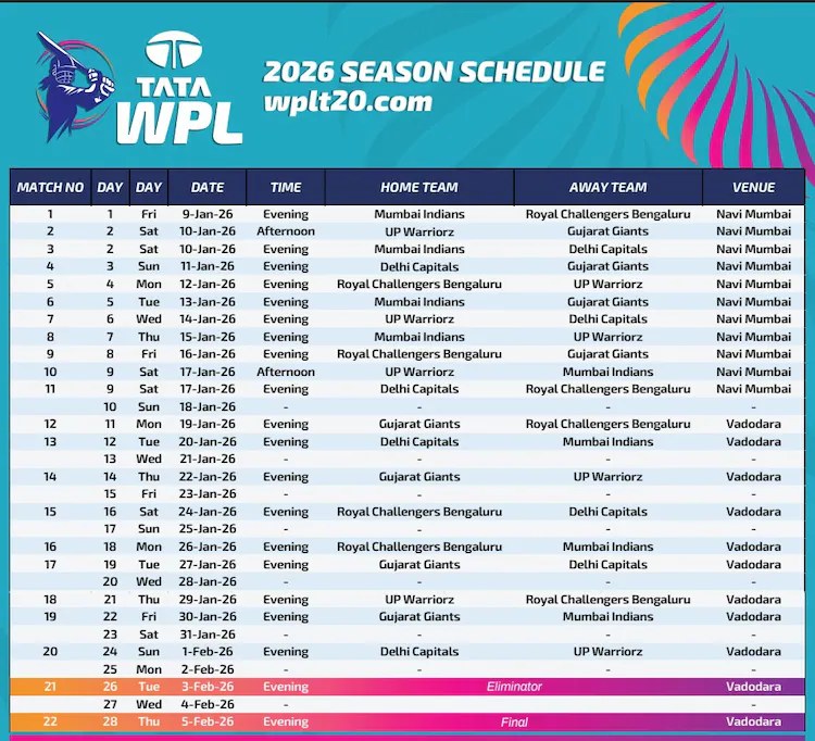 बीसीसीआई ने अगले सीजन का पूरा शेड्यूल किया जारी खेलपथ संवाद मुम्बई। महिला प्रीमियर लीग 20....