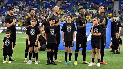 गिनी को 4-1 से हराया खेलपथ संवाद नई दिल्ली। ब्राजील की फुटबॉल टीम ने पहली बार काले कपड़े पहनकर मैच खेला। टीम ने अपने नस्लवाद विरोधी अभियान और साथी खिलाड़ी विनिसियस जूनियर के समर्थन में काले कपड़े पहनकर फुटबॉल मैच खेलने का फैसला किया था। जूनियर कई मौकों पर नस्लीय दुर्व्यवहार का शिकार बने हैं। टीम पहले हाफ में काले कपड़ों में खेली फिर दूसरे हाफ में पीले कपड़ों में मैच खेला। ब्राजील ने दोस्ताना मुकाबले में गिनी को 4-1 से हरा दिया.......