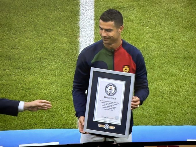 रचा इतिहास, गोल कर मनाया जश्न खेलपथ संवाद नई दिल्ली। पुर्तगाल के कप्तान और सर्वकालिक महान फुटबॉल खिलाड़ियों में एक क्रिस्टियानो रोनाल्डो ने एक बड़ी उपलब्धि हासिल कर ली है। वह अंतरराष्ट्रीय फुटबॉल में 200 मैच खेलने वाले पहले खिलाड़ी बन गए। रोनाल्डो यूरो 2024 के क्वालिफाइंग मैच में आइसलैंड के खिलाफ इस मौके को खास भी बनाया। उन्होंने मैच समाप्त होने से ठीक पहले 89वें मिनट में गोल कर टीम को 1-0 से जीत दिलाई। 38 वर्षीय रोनाल्डो ने ड.......