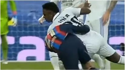 विनीशियस और डी जॉन्ग भिड़े बार्सिलोना। स्पैनिश लीग ला लिगा की लीडर टीम बार्सिलोना ने शुक्रवार को कोपा डेल रे के सेमीफाइनल के फर्स्ट लेग मैच में रियल मैड्रिड को हरा दिया। स्टाडियो सैंटिएगो बर्नाबू स्टेडियम में खेले गए मैच में बार्सिलोना के रॉबर्ट लेवानदॉस्की समेत कई स्टार खिलाड़ी चोट की वजह से नहीं खेल रहे थे। इसके बावजूद बार्सा की टीम रियल मैड्रिड पर हावी रही। पजेशन में डॉमिनेट करने के बाद भी मैड्रिड की टीम शॉट ऑन टारगेट लगाने में नाकामयाब .......