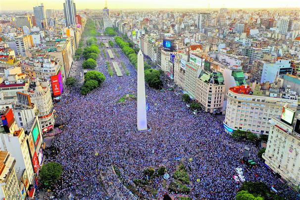 आसमान तक गूंजता रहा ‘मेस्सी मेस्सी’ का शोर ब्यूनस आयर्स। सड़कों पर चारों तरफ अर्जेंटीना के झंडे, नीली जर्सी में लोगों का झुंड और आसमान तक गूंजता ‘मेस्सी मेस्सी’ का शोर। कतर में फुटबॉल विश्व कप सेमीफाइनल में अर्जेंटीना की क्रोएशिया पर 3-0 से जीत के बाद देश के लगभग हर शहर में यह नजारा देखने को मिला। फुटबॉल का दीवाना देश कभी न खत्म होने वाले जश्न में डूब गया। राजधानी ब्यूनस आयर्स में मैच खत्म होते ही लोग सड.......