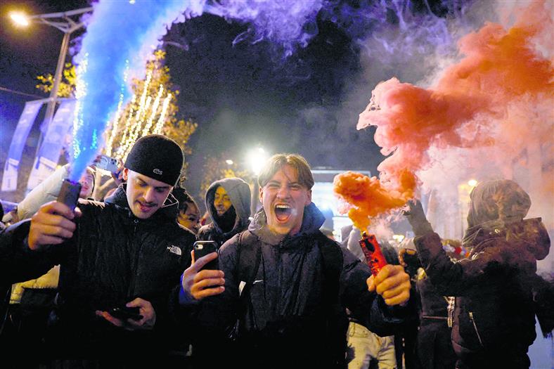 पेरिस। फ्रांस के विश्व कप फाइनल में पहुंचते ही देश भर में फुटबॉल की दीवानगी चरम पर पहुंच गई। हर शहर में जश्न शुरू हो गया, जबकि मोरक्को के समर्थकों के चेहरों पर मायूसी तो थी, लेकिन टीम के ऐतिहासिक प्रदर्शन पर उन्हें गर्व है। पेरिस में चैम्प्स एलिसीस पर फुटबॉलप्रेमियों का हुजूम उमड़ पड़ा, जिन्होंने आतिशबाजी की और फ्रांस के झंडे लहराये। चारों तरफ कार के हॉर्न का शोर सुनाई दिया। शहर भर में दंगा रोकने वाली पुलिस गश्त करती दिखाई दी। पेरिस क.......