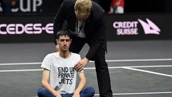 लंदन। लेवर कप टेनिस टूर्नामेंट के पहले दिन बड़ा विवाद देखने को मिला। शुक्रवार (23 सितम्बर) को लंदन में एक प्रदर्शनकारी टेनिस कोर्ट पर पहुंच गया और उसने अपने हाथ में आग लगा ली। वह ब्रिटेन में प्राइवेट विमानों के उड़ान का विरोध कर रहा था। उसके प्रदर्शन के कारण टीम यूरोप के खिलाड़ी ग्रीस के स्टेफानोस सितसिपास और टीम वर्ल्ड कप के खिलाड़ी अर्जेंटीना के डिएगो श्वार्ट्जमैन के बीच चल रहे मुकाबले को कुछ देर के लिए रोक दिया गया। सुरक्षाकर्मियों ने ते.......