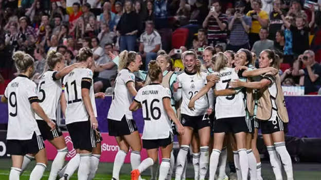 क्वार्टर फाइनल में ऑस्ट्रिया को 2-0 से हराया लंदन। जर्मनी ने 10वीं बार महिला यूरोपियन चैम्पियनशिप फुटबॉल के सेमीफाइनल में प्रवेश किया है। आठ बार की विजेता टीम ने क्वार्टर फाइनल में ऑस्ट्रिया को 2-0 से हराया। जर्मनी के लिए लीन मुगुल ने 25वें और एलेक्जेंड्रा पॉप ने 89वें मिनट में गोल किया। ऑस्ट्रिया ने भी गोल करने के कई प्रयास किए, लेकिन जर्मनी की रक्षापंक्ति को भेद नहीं सकी। सेमीफाइनल में 28 जुलाई को जर्मनी का सामना नीदरलैंड और फ्रांस के बीच.......