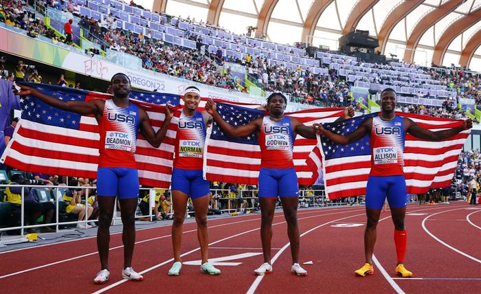 विश्व एथलेटिक्स चैम्पियनशिपः भारत 33वें स्थान पर यूजीन। सिडनी मैकलॉघलिन के बेहतरीन प्रदर्शन से अमेरिका ने महिलाओं की चार गुणा 400 मीटर दौड़ में स्वर्ण पदक जीतकर विश्व एथलेटिक्स चैम्पियनशिप में कुल पदकों की संख्या 33 पर पहुंचाई जोकि नया रिकॉर्ड है। विश्व चैम्पियनशिप में दो अन्य रिकॉर्ड भी बने। भारत ने नीरज चोपड़ा के पदक की बदौलत 33वां स्थान हासिल किया। नाईजीरिया की टोबी अमुसन ने महिलाओं की 100 मीटर बाधा दौड़ में 12.12 सेकेंड के सा.......