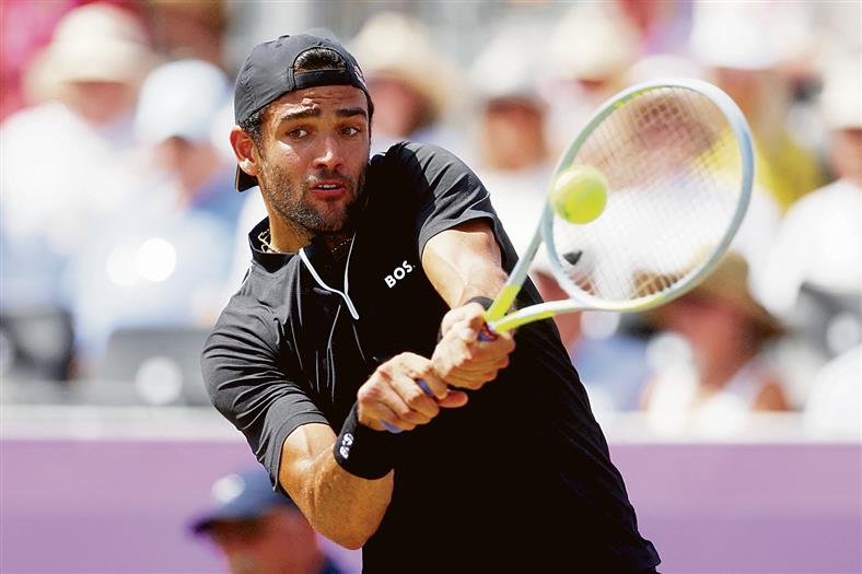 क्वीन्स क्लब टेनिस टूर्नामेंट लंदन। मौजूदा चैम्पियन मैटियो बेरेटिनी ने पहला सेट गंवाने के बाद वापसी करते हुए डेनिस कुडला को हराकर क्वीन्स क्लब टेनिस टूर्नामेंट के क्वार्टर फाइनल में जगह बनायी। बेरेटिनी ने कुडला के खिलाफ 3-6, 7-5 (5), 6-4 से जीत हासिल की। उनके अलावा सातवें वरीय मारिन सिलिच अंतिम आठ में पहुंचे हैं। बेरेटिनी का अगला मुकाबला टॉमी पॉल से होगा, जिन्होंने बृहस्पतिवार को तीन बार के ग्रैंडस्लैम चैंपियन स्टेन वावरिंका को.......