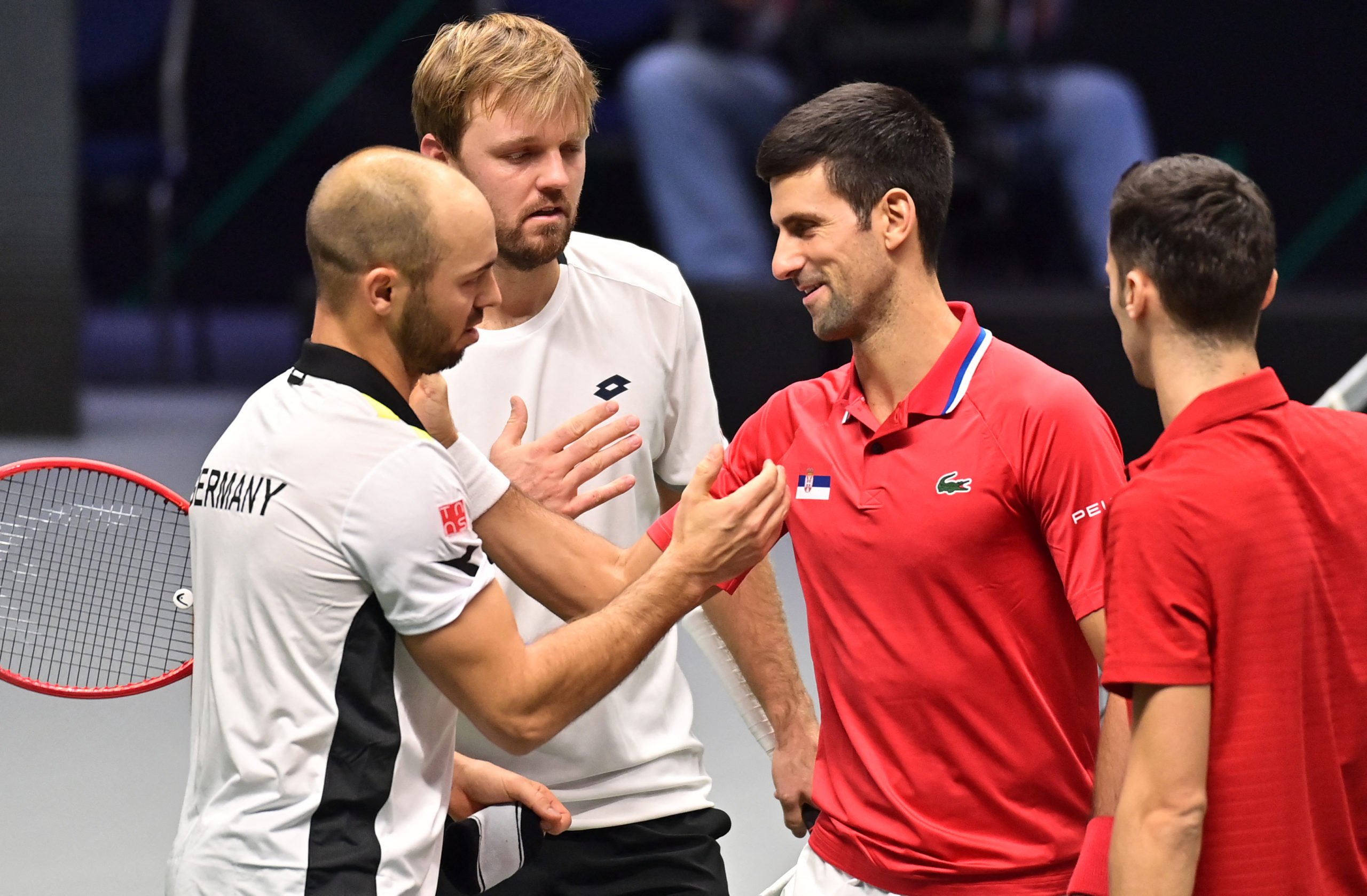 इटली अंतिम आठ में वाशिंगटन। दुनिया के नम्बर एक खिलाड़ी नोवाक जोकोविच लगातार मुकाबले खेलने उतरे लेकिन इसके बावजूद उनकी टीम सर्बिया को डेविस कप फाइनल्स टेनिस टूर्नामेंट के ग्रुप चरण में जर्मनी के खिलाफ शिकस्त झेलनी पड़ी। जेन-लेनार्ड स्ट्रुफ को हराकर सर्बिया को 1-1 से बराबरी दिलाने के तुरंत बाद जोकोविच निकोला सेसिच के साथ युगल मुकाबले में उतरे। टिम पुएट्ज और केविन क्राविट्ज की जोड़ी ने हालांकि कड़े मुकाबले में 7-6, 3-6, 7-6 की जीत.......