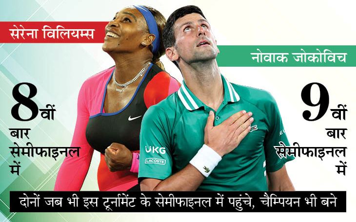 क्वार्टर फाइनल में ज्वेरेव को हराया मेलबर्न। आठ बार के ऑस्ट्रेलियन ओपन चैंपियन नोवाक जोकोविच मंगलवार को साल के पहले ग्रैंड स्लैम के सेमीफाइनल में पहुंच गए हैं। 33 वर्षीय जोकोविच नौवीं बार पहले ग्रैंड स्लैम के सेमीफाइनल में पहुंचे हैं। उन्होंने क्वार्टर फाइनल में जर्मनी के अलेक्जेंडर ज्वेरेव को 6-7, 6-2, 6-4, 7-6 से हराया। ओसाका ने सेमीफाइनल में किया प्रवेश नाओमी ओसाका ने सीधे सेटों में जीत दर्ज करके ऑस्ट्रेलियाई ओपन टेनिस टूर्.......