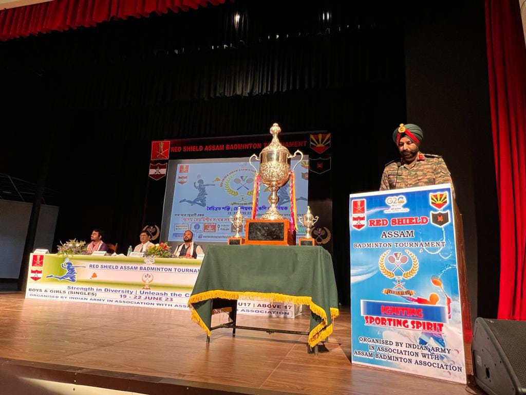 तिनसुकिया, डिगबोई और डिब्रूगढ़ में होंगे मैच खेलपथ संवाद डिब्रूगढ़। भारतीय सेना के आयोजन से पूर्वोत्तर के नवोदित बैडमिंटन खिलाड़ियों को एक बेहतरीन प्लेटफार्म मिलने जा रहा है। यहां से देश और दुनिया में भारत का नाम रोशन करने वाले खिलाड़ी पैदा होंगे। इसी उद्देश्य से भारतीय सेना ने शनिवार को असम के डिब्रूगढ़ के रंगघर ऑडिटोरियम में 'रेड शील्ड असम बैडमिंटन टूर्नामेंट' के पहले संस्करण के लिए 'ट्रॉफी अनावरण समारोह' समारोह का .......
