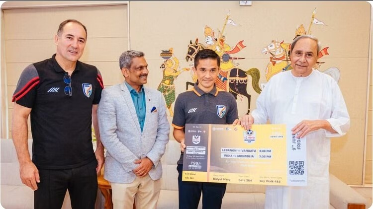 इंटरकॉन्टिनेंटल कप टूर्नामेंट में चार देश होंगे शामिल खेलपथ संवाद भुवनेश्वर। ओडिशा के मुख्यमंत्री नवीन पटनायक ने आगामी इंटरकॉन्टिनेंटल कप फुटबॉल टूर्नामेंट का पहला टिकट खरीदा है। यह टूर्नामेंट भुवनेश्वर में नौ से 18 जून तक खेला जाएगा। चार देशों के टूर्नामेंट में भारत, लेबनान, मंगोलिया और वानुअतु शामिल होंगे। अखिल भारतीय फुटबॉल महासंघ (एआईएफएफ) के महासचिव डॉ. शाजी प्रभाकरन और भारतीय फुटबॉल टीम के कोच इगोर स्टिमेक की उपस्थिति मे.......
