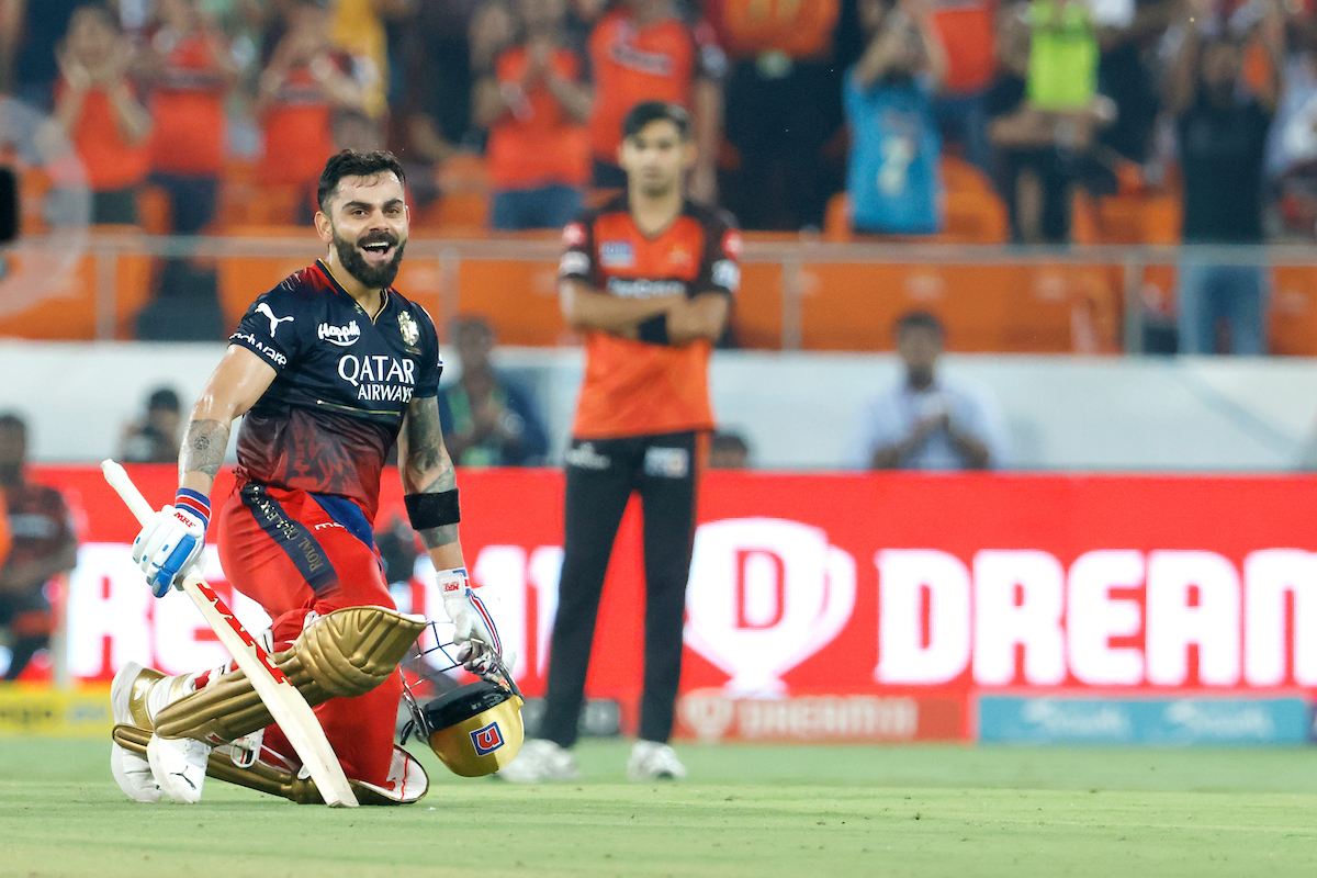'फर्क नहीं पड़ता कौन क्या कहता है' खेलपथ संवाद हैदराबाद। आईपीएल 2023 में गुरुवार को रॉयल चैलेंजर्स बैंगलोर ने सनराइजर्स हैदराबाद के खिलाफ आठ विकेट से बेहतरीन जीत हासिल की। 187 रन के लक्ष्य को बैंगलोर ने 19.2 ओवर में हासिल कर लिया। कोहली ने 63 गेंदों में 12 चौके और चार छक्के की मदद से 100 रन की पारी खेली। यह आईपीएल में उनका छठा शतक रहा। इस तरह उन्होंने क्रिस गेल के आईपीएल में सबसे ज्यादा शतक के रिकॉर्ड की बराबरी की। साथ .......