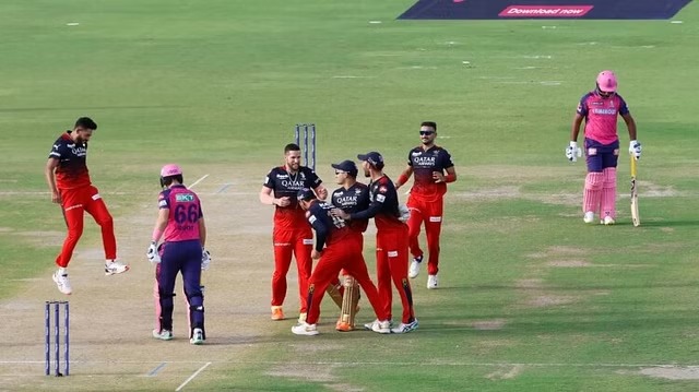 आरसीबी 112 रन से जीतकर टूर्नामेंट में बरकरार खेलपथ संवाद जयपुर। आईपीएल के 60वें मैच में राजस्थान रॉयल्स को शर्मनाक हार का सामना करना पड़ा। रॉयल चैलेंजर्स बैंगलोर (आरसीबी) ने उसे जयपुर के सवाई मानसिंह स्टेडियम में रविवार (14 मई) को 112 रन से हरा दिया। आरसीबी के कप्तान फाफ डुप्लेसिस ने टॉस जीतकर पहले बल्लेबाजी का फैसला किया। आरसीबी ने 20 ओवर में पांच विकेट पर 171 रन बनाए। जवाब में राजस्थान की टीम 10.3 ओवर में 59 रन पर सिमट गई। आईपीएल इ.......