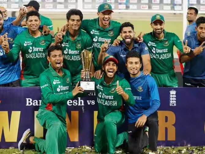 इंग्लैंड नहीं बना सका 7 ओवर में 59 रन, हाथ में थे 9 विकेट नई दिल्ली। ओपनर बल्लेबाज लिटन दास के अर्धशतक के बाद मुस्ताफिजुर रहमान की अगुवाई में गेंदबाजों के अच्छे प्रदर्शन से बांग्लादेश ने मंगलवार को तीसरे और अंतिम टी20 अंतरराष्ट्रीय क्रिकेट मैच में विश्व चैम्पियन इंग्लैंड को 16 रन से हराकर तीन मैचों की सीरीज में 3-0 से क्लीन स्वीप किया। 159 रन के टारगेट के जवाब में अंग्रेज टीम एक समय अच्छी स्थिति में थी। उसे 7 ओवर में 59 चाहिए थे और 9 विकेट .......