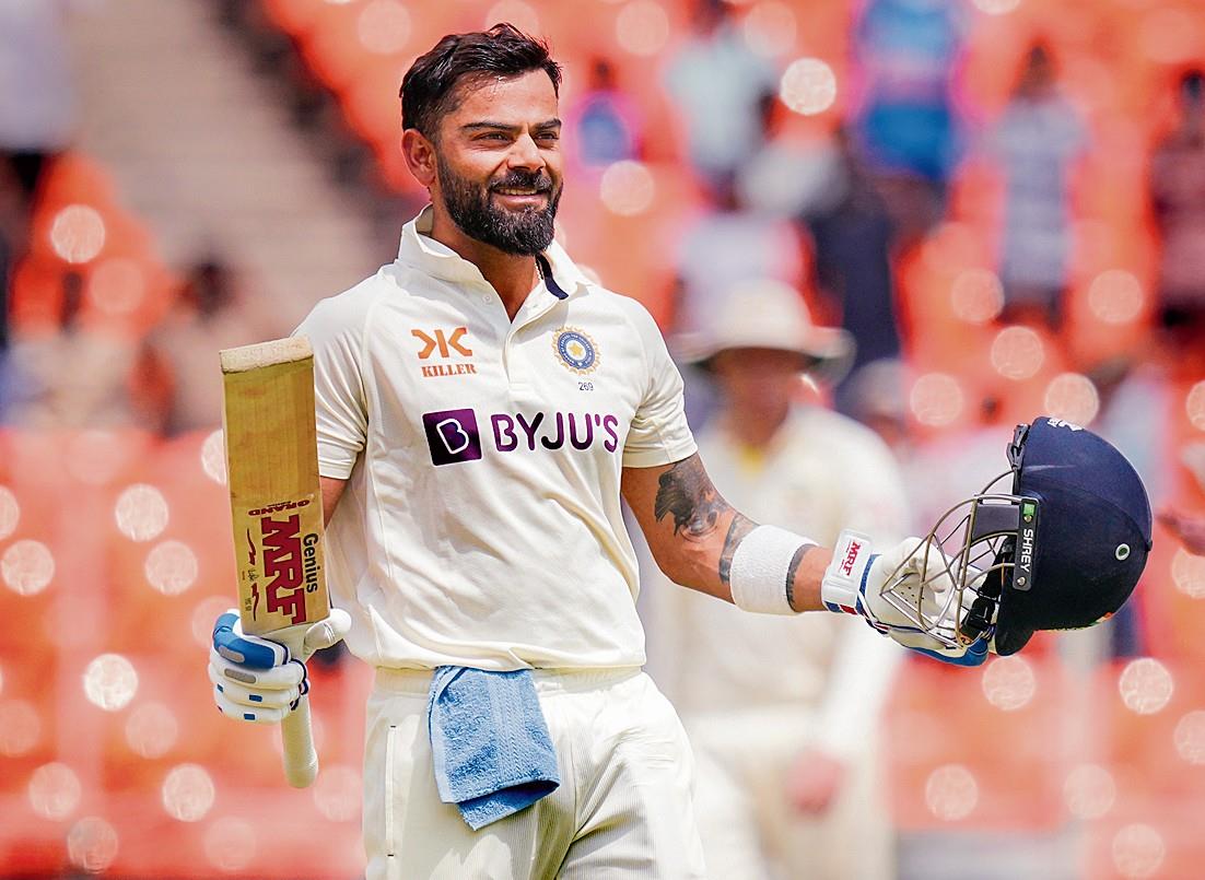 खेलपथ संवाद अहमदाबाद। स्टार बल्लेबाज विराट कोहली ने टेस्ट शतक के सूखे को खत्म करने के अलावा अक्षर पटेल के साथ शतकीय साझेदारी की, जिससे भारत ने ऑस्ट्रेलिया के खिलाफ चौथे और अंतिम क्रिकेट टेस्ट के चौथे दिन पहली पारी में 571 रन बनाकर 91 रन की बढ़त हासिल की। ऑस्ट्रेलिया ने इसके जवाब में दिन का खेल खत्म होने तक दूसरी पारी में बिना विकेट खोए तीन रन बनाए। मेहमान टीम ने ट्रेविस हेड (नाबाद 03) के साथ पारी का आगाज करने के लिए मैथ्यू कुहन.......