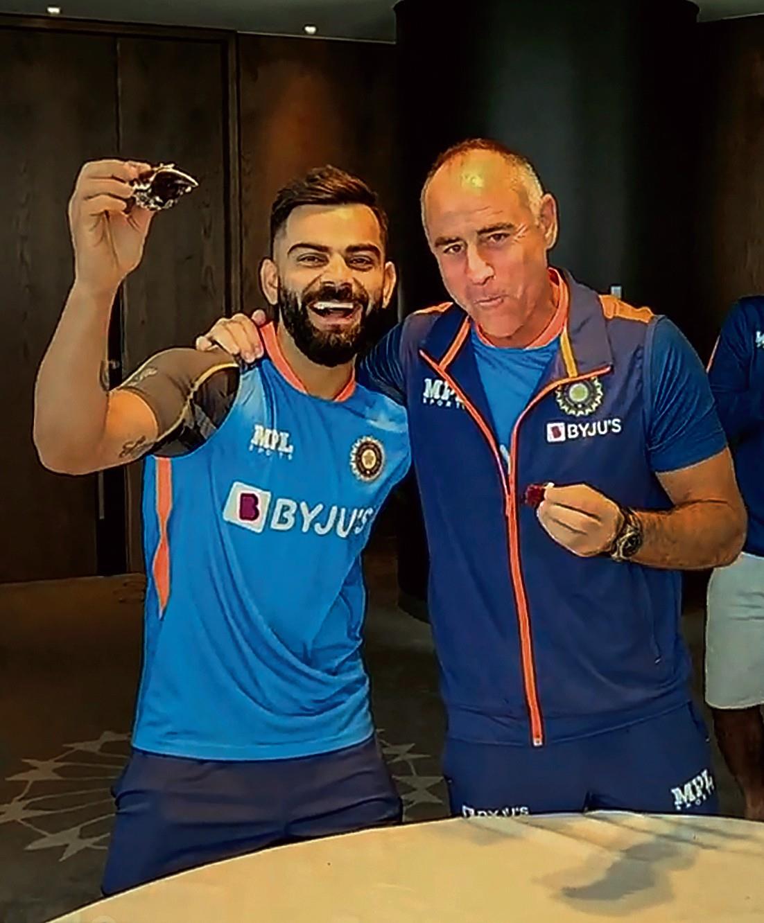 बोले-13 नवम्बर को काटना चाहता हूं 'विराट केक' मेलबर्न। विराट कोहली ने अपना 34वां जन्मदिन शनिवार को मेलबर्न क्रिकेट ग्राउंड (एमसीजी) पर भारतीय मीडिया के साथ मनाया और इस अवसर पर अपनी इच्छा जाहिर की कि वह भारत के लिए टी20 विश्व कप जीतने के बाद 13 नवम्बर को इससे भी बड़ा केक काटना चाहते हैं। कोहली एमसीजी की गैलरी से निकलते हुए मुस्कुरा रहे थे और जिस किसी ने भी उन्हें जन्मदिन की शुभकामनाएं दीं उससे वह हाथ मिलाकर अभिवादन स्वीकार कर रहे थे।&n.......