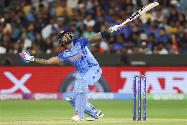 टी20 विश्वकप: सेमीफाइनल में इंग्लैंड से होगी भिड़ंत मेलबर्न। दुनिया के नम्बर एक टी20 बल्लेबाज सूर्यकुमार यादव और लोकेश राहुल के अर्धशतक के बाद रविचंद्रन अश्विन की अगुआई में गेंदबाजों के उम्दा प्रदर्शन से भारत आईसीसी टी20 विश्व कप के सुपर 12 के अपने अंतिम मैच में जिम्बाब्वे को 71 रन से हराकर ग्रुप दो में शीर्ष पर रहते हुए सेमीफाइनल में पहुंचा जहां उसकी भिड़ंत इंग्लैंड से होगी। भारत के 187 रन के लक्ष्य का पीछा करते हुए जिम्बाब्वे.......