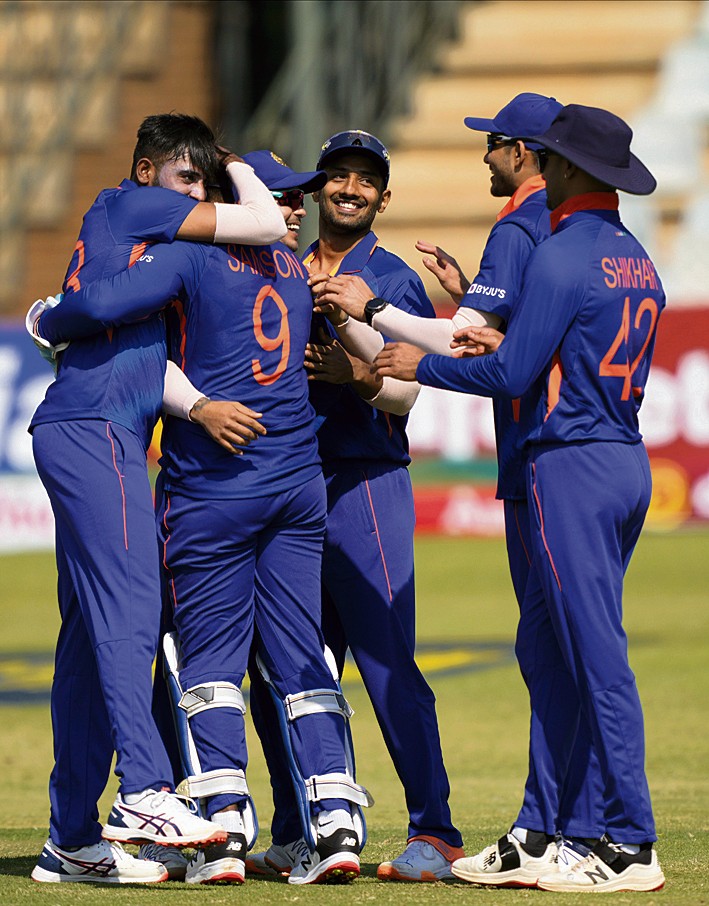 हरारे। दीपक चाहर की अगुआई में गेंदबाजों के कमाल के बाद शुभमन गिल और शिखर धवन के नाबाद अर्धशतकों से भारत ने पहले एकदिवसीय अंतर्राष्ट्रीय क्रिकेट मैच में बृहस्पतिवार को यहां जिंबाब्वे पर 10 विकेट की एकतरफा जीत दर्ज करके तीन मैच की सीरीज में 1-0 की बढ़त बनाई। भारत ने एकदिवसीय क्रिकेट में तीसरी बार जिंबाब्वे को 10 विकेट से हराया। जिंबाब्वे के 190 रन के लक्ष्य का पीछा करते हुए भारत ने गिल (72 गेंद में नाबाद 82, 10 चौके, एक छक्का) और धवन (113 गें.......