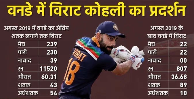 कई क्रिकेटर्स विराट की कर रहे आलोचना नई दिल्ली। भारत के स्टार बल्लेबाज विराट कोहली इन दिनों आलोचकों के निशाने पर चल रहे हैं। रन बनाने के लिए जूझ रहे विराट को टी-20 वर्ल्ड कप से पहले भारतीय टीम से निकालने की मांग की जा रही है। तीन साल पहले तक विराट कोहली को पूूरी दुनिया में रन मशीन बोला जाता था, लेकिन अब स्थितियां यह बन पड़ी हैं कि उन्हें इस साल ऑस्ट्रेलिया में होने वाले टी-20 विश्व कप से बाहर करने की चौतरफा आवाज बुलंद होने लगी है। .......
