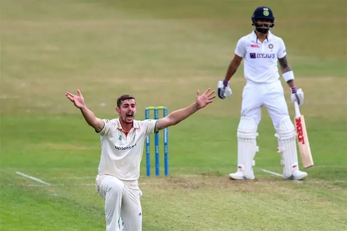 विकेटकीपर श्रीकर भरत का पचासा पहले दिन भारत का स्कोर 246/8 लिसेस्टर। इंग्लैंड के खिलाफ एक जुलाई से शुरू हो रहे टेस्ट मैच के लिए पूरी टीम इंडिया ने तैयारी शुरू कर दी है। टेस्ट मैच से पहले गुरुवार (23 जून) को भारतीय टीम और लिसेस्टशायर के बीच अभ्यास मैच शुरू हुआ। भारतीय कप्तान रोहित शर्मा ने टॉस जीतकर पहले बल्लेबाजी का फैसला किया। भारत ने पहले दिन आठ विकेट पर 246 रन बनाए। विकेटकीपर श्रीकर भरत को छोड़कर कोई भी बल्लेबाज नहीं टिक पाया। रोह.......