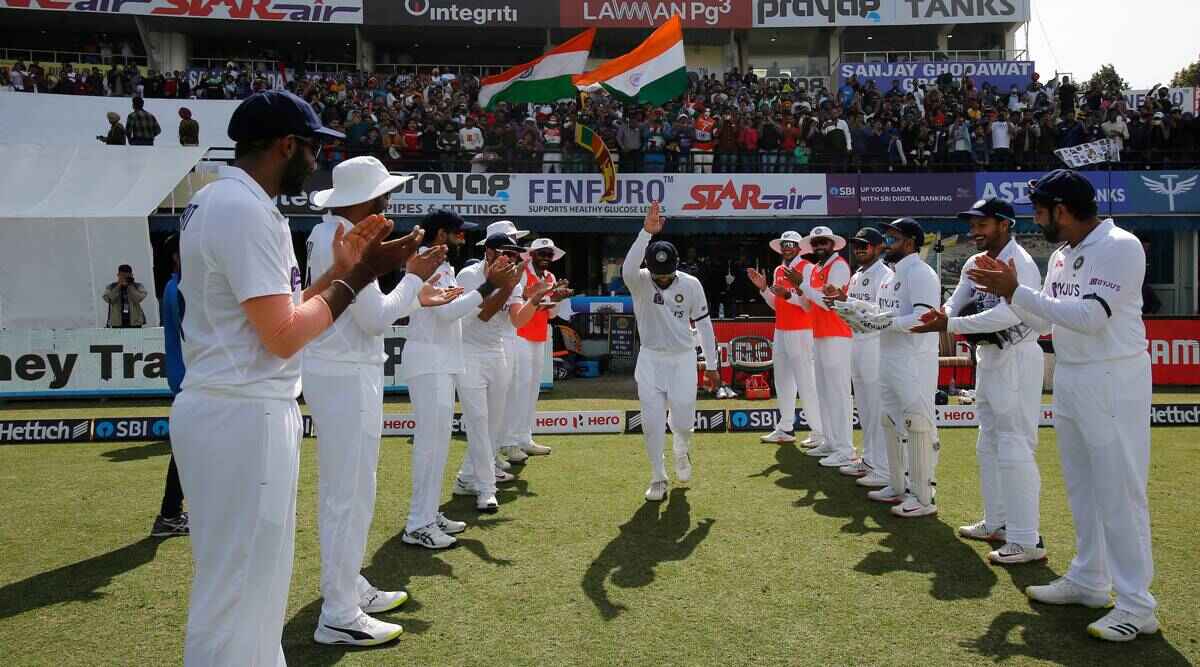 विराट कोहली को मोहाली टेस्ट के दूसरे दिन टीम से दिलाया 'गार्ड ऑफ ऑनर' मोहाली। पूर्व भारतीय कप्तान और स्टार क्रिकेटर विराट कोहली को मोहाली टेस्ट के दूसरे दिन विशेष सम्मान दिया गया। अपना 100वां टेस्ट मैच खेल रहे विराट को श्रीलंका के खिलाफ पहले टेस्ट के दूसरे दिन भारतीय खिलाड़ियों ने गार्ड ऑफ ऑनर दिया। भारत द्वारा पहली पारी 574 के स्कोर पर घोषित करने के बाद भारतीय खिलाड़ी फील्डिंग के लिए मैदान पर उतरे। इस दौरान सभी ने कप्तान.......