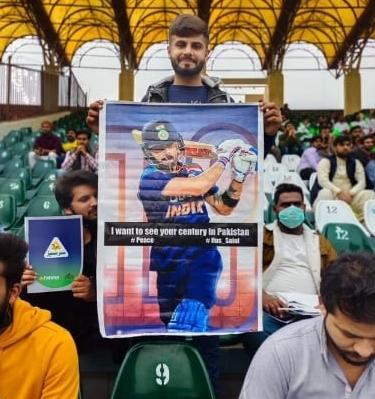 लिखा- पाकिस्तान में कोहली को शतक बनाते हुए देखना चाहते हैं पीएसएल में भी विराट-रोहित की डिमांड लाहौर। टीम इंडिया के पूर्व कप्तान विराट कोहली के 71वें शतक का इंतजार अब पाकिस्तान में भी हो रहा है। कोहली के बल्ले से रन तो निकल रहे हैं, लेकिन वो अपनी पारी को शतक में तब्दील नहीं कर पा रहे हैं। पाकिस्तान सुपर लीग के दौरान लाहौर के गद्दाफी स्टेडियम में एक प्रशंसक कोहली के पोस्टर के साथ नजर आया। पोस्टर में लिखा था, 'मैं आपका शतक पाकिस्ता.......