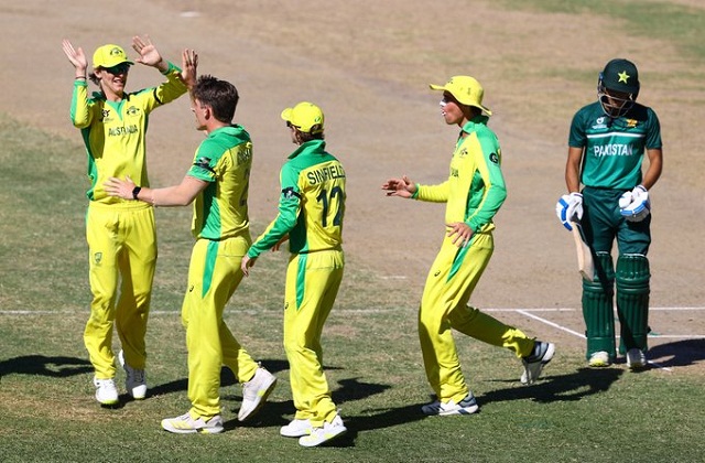पाकिस्तान को ऑस्ट्रेलिया ने हराया अंडर-19 वर्ल्ड कप पर कोरोना का अटैक एंटीगा। अंडर-19 वर्ल्ड कप में भारत और पाकिस्तान के बीच सेमीफाइनल में भिड़ंत की संभावना खत्म हो गई है। शुक्रवार को खेले गए सुपर लीग के क्वार्टर फाइनल में ऑस्ट्रेलिया ने पाकिस्तान को 119 रन से हरा दिया है। पहले बल्लेबाजी करने उतरी ऑस्ट्रेलिया ने 7 विकेट के नुकसान पर निर्धारित ओवर में 276 रन बनाए। वहीं टारगेट का पीछा करते हुए पाकिस्तान की पूरी टीम 35.1 ओवर में 157 रन प.......