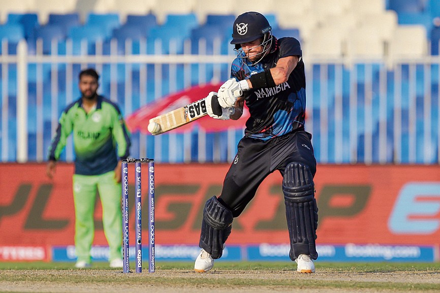 टी20 विश्व कप शारजाह। पहली बार विश्व कप खेल रही नामीबिया ने गेंदबाजों के शानदार प्रदर्शन के बाद कप्तान गेरहार्ड इरास्मस के नाबाद अर्धशतक से शुक्रवार को यहां आईसीसी पुरूष टी20 विश्व कप के पहले दौर के अपने अंतिम ग्रुप ए मैच में आयरलैंड को 8 विकेट से हराकर सुपर 12 में क्वालीफाई किया। नामीबिया की टीम ग्रुप ए में श्रीलंका के साथ सुपर 12 में पहुंच गयी। आयरलैंड की टीम आज 8 विकेट पर 125 रन ही बना सकी। नामीबिया के लिये कप्तान गेरहार्ड इ.......