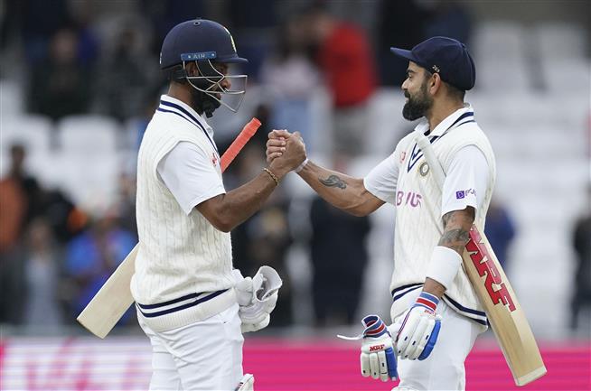 शार्दुल ठाकुर ने लगाया ताबड़तोड़ पचासा, इंग्लैंड भी लड़खड़ाया लंदन। इंग्लैंड के खिलाफ चौथे क्रिकेट टेस्ट के पहले दिन बृहस्पतिवार को भारतीय टीम 191 रन पर आउट हो गई। विराट कोहली ने 96 गेंद में 50 रन बनाये जबकि शार्दुल ठाकुर ने 36 गेंद में 57 रन की पारी खेलकर भारत को कम स्कोर पर सिमटने से बचाया। टॉस जीतकर गेंदबाजी करने वाली इंग्लैंड टीम के लिये क्रिस वोक्स ने 4 और ओली रॉबिनसन ने 3 विकेट लिये। कप्तान विराट कोहली अच्छी शुरूआत को बड़.......
