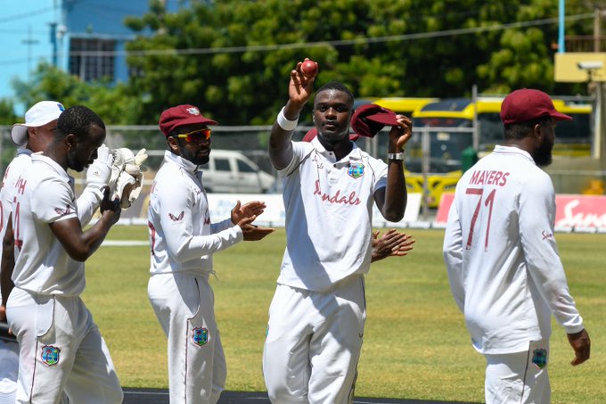 किंगस्टन। अनुभवी तेज गेंदबाज केमार रोच और युवा जेडेन सील्स के बीच 17 रन की अनमोल साझेदारी के दम पर वेस्टइंडीज ने पहले क्रिकेट टेस्ट में पाकिस्तान पर एक विकेट से रोमांचक जीत दर्ज की। सील्स ने पहले 55 रन देकर 5 विकेट भी लिये थे। वेस्टइंडीज ने पाकिस्तान को दूसरी पारी में 203 रन से आउट करके 167 रन से बढ़त ली। मेजबान टीम के 3 विकेट 16 रन पर गिर गए थे, जिसके बाद जर्मेइन ब्लैकवुड ने अर्धशतक जमाकर टीम को 6 विकेट पर 111 रन तक पहुंचाया। मैच बरा.......