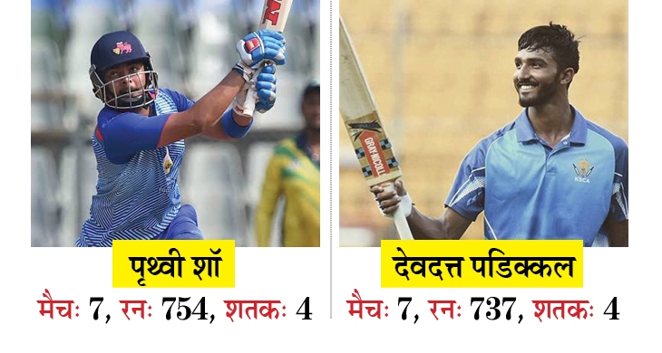 चौथा शतक जमाकर मुंबई को विजय हजारे ट्रॉफी के फाइनल में पहुंचाया एक सीजन में सबसे ज्यादा रन का रिकॉर्ड भी बनाया नई दिल्ली। घरेलू टूर्नामेंट विजय हजारे ट्रॉफी का फाइनल मुंबई और उत्तर प्रदेश (यूपी) के बीच 14 मार्च को दिल्ली में खेला जाएगा। सेमीफाइनल में मुंबई ने कर्नाटक को 72 रन से हराया। वहीं, यूपी ने गुजरात टीम को 5 विकेट से शिकस्त दी। मुंबई के कप्तान पृथ्वी शॉ ने गुरुवार को एक रिकॉर्ड कायम कर दिया। वे एक सीजन में सबसे ज्यादा 754 रन ब.......