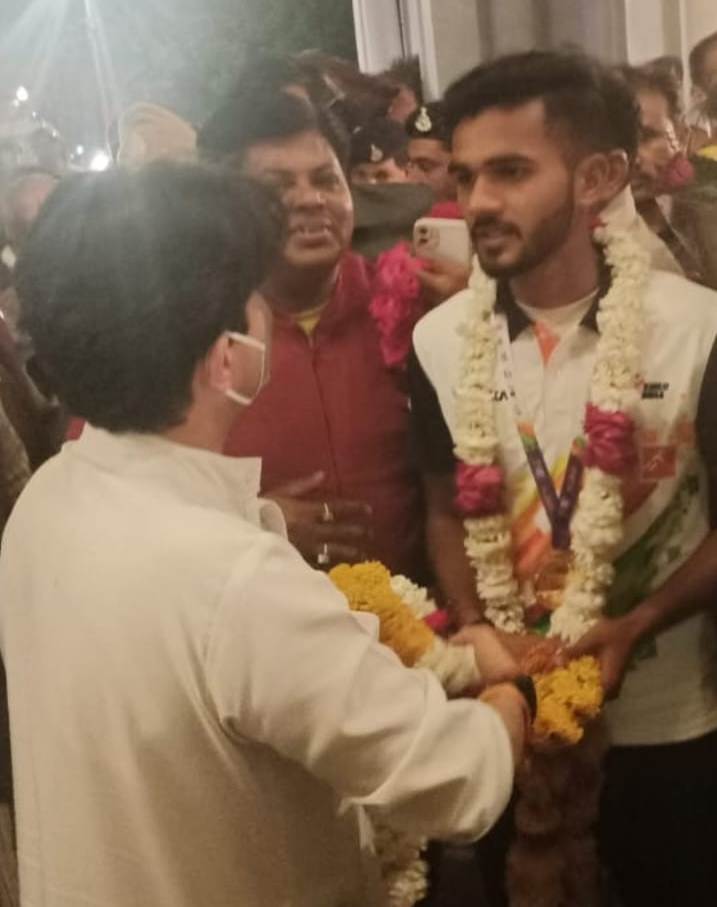 जूनियर विश्व कप हॉकी प्रतियोगिता में भारत का कर चुका है प्रतिनिधित्व खेलपथ संवाद ग्वालियर। रविवार 19 फरवरी को केंद्रीय नागर विमानन एवं इस्पात मंत्री ज्योतिरादित्य सिंधिया ने दर्पण मिनी स्टेडियम ग्वालियर के अंतरराष्ट्रीय हॉकी खिलाड़ी अंकित पाल को मेडल एवं पुष्पाहार पहनाकर सम्मानित किया। इस अवसर पर हॉकी प्रशिक्षक अविनाश भटनागर भी उपस्थित थे। जूनियर विश्व कप हॉकी प्रतियोगिता में भारत का प्रतिनिधित्व कर चुके ग्वालियर के गौरव अंकित.......