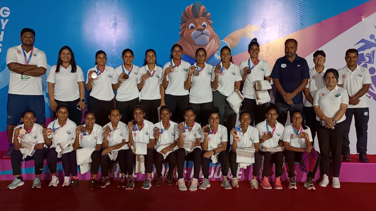 झारखण्ड को 5-2 से हराया, साधना, ऐश्वर्या और ज्योति ने किए गोल खेलपथ संवाद ग्वालियर। मध्य प्रदेश की हॉकी बेटियों ने अपने बेजोड़ और दमदार खेल से मंगलवार को मजबूत झारखण्ड टीम को 5-2 से पराजित कर राष्ट्रीय खेलों का कांस्य पदक अपने नाम किया। यह पहला अवसर है जब मध्य प्रदेश की हॉकी बेटियां न केवल किसी बड़ी प्रतियोगिता में खेलीं बल्कि अंतरराष्ट्.......
