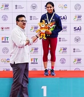 तलवारबाजीः पंजाब विश्वविद्यालय की जसकीरत को हराया खेलपथ संवाद लखनऊ। उत्तर प्रदेश की राजधानी लखनऊ में आयोजित खेलो इंडिया विश्वविद्यालय खेल में तनिष्का खत्री ने तलवारबाजी के अपने पहले ही मुकाबले में स्वर्ण जीतकर हरियाणा का नाम रोशन किया है। अभी तनिष्का के दो और मुकाबले होने हैं। तनिष्का ने पंजाब यूनिवर्सिटी की जसकीरत को 15-10 से मात देकर स्वर्ण पदक हासिल किया। तनिष्का पटियाला स्थित एनआईएस में ट्रेनिंग ले रही है और खेलो इंडिया वि.......