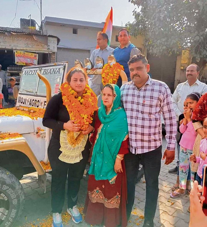 ढोल-नगाड़ों के साथ किया गया स्वागत खेलपथ संवाद इन्द्री। उपमंडल के गांव ब्याना निवासी भारोत्तोलक रश्मि ने भारोत्तोलन में राष्ट्रीय स्तर पर गोल्ड मेडल हासिल कर मिसाल कायम की है। स्ट्रोंगेस्ट वूमेन का खिताब जीतने के बाद रश्मि ने बिहार के पटना में आयोजित खेलो इंडिया वूमेन रैंकिंग प्रतियोगिता में नेशनल चैम्पियनशिप में गोल्ड मेडल हासिल किया। मेडल जीतकर लौटी रश्मि का पूरे गांव में ढोल-नगाड़ों के साथ स्वागत किया गया। पूरे गांव के लोगो.......