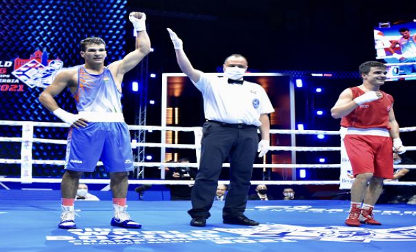 बेलग्रेड। भारतीय मुक्केबाज आकाश सांगवान (67 किलोग्राम) ने बेलग्रेड में चल रही एआईबीए पुरुष विश्व चैम्पियनशिप के पहले मुकाबले में तुर्की के फुरकान एडम पर 5-0 की आसान जीत से दूसरे दौर में प्रवेश किया। मौजूदा राष्ट्रीय चैम्पियन फुरकान का अगला मुकाबला जर्मनी के डेनियल क्रोटर से होगा जिन्हें पहले दौर में बाई मिली है। कल रात खेले गये मुकाबले में भारतीय मुक्केबाज ने शुरू से एडम पर दबदबा बनाकर एकतरफा जीत हासिल की। इससे पहले रोहित मोर (57 किग्.......
