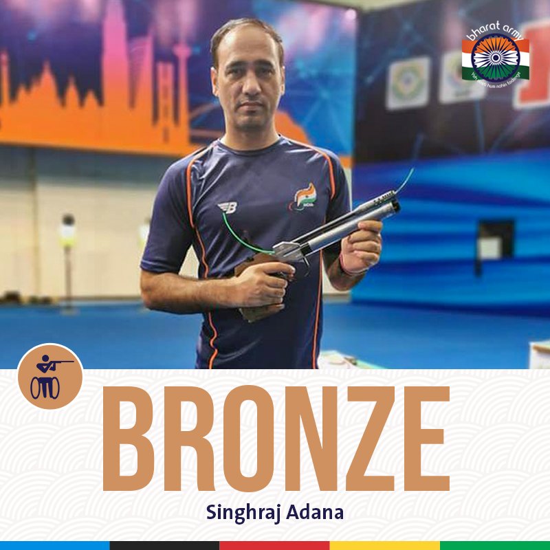 टोक्यो में कांस्य पदक जीतकर रचा इतिहास खेलपथ संवाद नई दिल्ली। टोक्यो पैरालम्पिक में भारत के सिंहराज अडाना ने पुरुषों की 10 मीटर एयर पिस्टल स्पर्धा एसएच-1 के फाइनल में कांस्य पदक जीतकर इतिहास रच दिया। उन्होंने यह पदक 216.8 अंकों के साथ अपनी झोली में डाला। उनकी इस ऐतिहासिक उपलब्धि के बाद हर कोई तारीफ कर रहा है। प्रधानमंत्री नरेंद्र मोदी ने भी उन्हें कांस्य पदक जीतने पर बधाई दी। हरियाणा के बहादुरगढ़ से ताल्लुक रखने वाले शूटर सिंहराज का .......