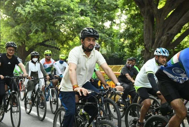 आजादी का अमृत महोत्सव: स्वास्थ्य मंत्रालय का जागरूकता अभियान खेलपथ संवाद नई दिल्ली। शनिवार को आजादी का अमृत मोहत्सव मनाने के लिए स्वास्थ्य मंत्रालय की ओर से जागरूकता अभियान के तहत पेडल फॉर हेल्थ कार्यक्रम का आयोजन किया गया। जिसमें केंद्रीय मंत्री अनुराग ठाकुर, मनसुख मांडविया और किरेन रिजिजू ने शिरकत की। इस मौके पर इन तीनों मंत्रियों ने नई दिल्ली में मेजर ध्यानचंद नेशनल स्टेडियम से लेकर अकबर रोड तक साइकिल चलाई। पेडल फॉर हेल्थ कार्यक्र.......