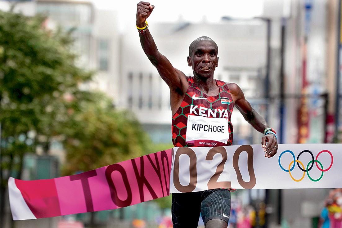 सापोरो। केन्या के इलियुड किपचोगे ने आखिरी 12 किलोमीटर में अपनी गति बढ़ाकर टोक्यो ओलम्पिक खेलों की पुरुष मैराथन प्रतियोगिता में रविवार को यहां अपने खिताब का बखूबी बचाव किया। किपचोगे ने उमस भरे मौसम में सापोरो की सड़कों पर दौड़ते हुए दो घंटे, आठ मिनट, 38 सेकंड में दौड़ पूरी करके स्वर्ण पदक जीता। वह नीदरलैंड के रजत पदक विजेता अब्दी नगीये से 80 सेकेंड से भी अधिक समय आगे रहे। बेल्जियम के बाशिर अब्दी ने कांस्य पदक जीता। इस प्रतियोगिता के सा.......