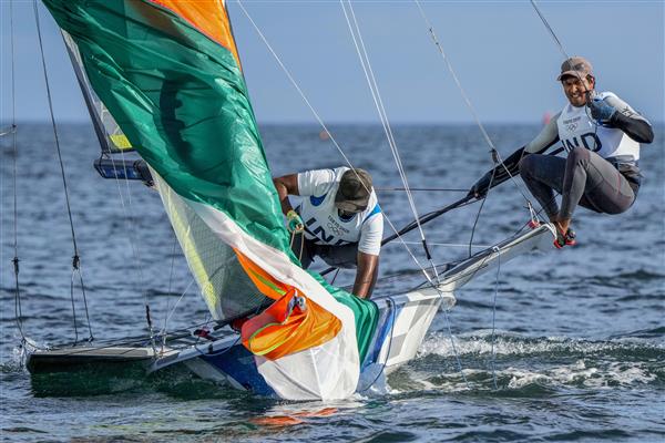 इनोशिमा। सेलर के गणपति और वरुण ठक्कर की भारतीय जोड़ी बुधवार को यहां टोक्यो ओलंपिक की पुरुषों की स्किफ 49अर सेलिंग (पाल नौकायान) स्पर्धा की चार रेस के बाद 18वें स्थान पर रही। भारतीय जोड़ी बुधवार को हुई रेस में 18वें, 17वें और 19वें स्थान पर रही। मंगलवार को इनोशिमा याट हार्बर में 19 टीम की पहली रेस में वे 18वें स्थान पर रहे थे। प्रतियोगिता में आठ और रेस तथा एक पदक दौर बचा है। मंगलवार को विष्णु सरवनन और नेत्रा कुमानन छह रेस के बाद अपनी स.......