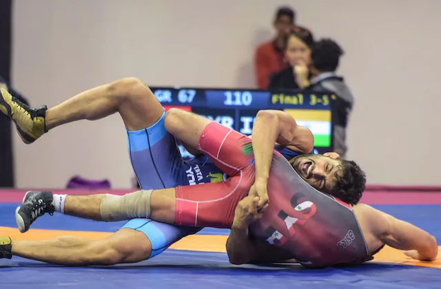 नयी दिल्ली। ओलम्पिक के लिए क्वालीफाई कर चुके भारतीय पहलवान दीपक पूनिया बायें हाथ की चोट बढ़ने से बचने के लिए पोलैंड ओपन से हट गए। टोक्यो खेलों से पूर्व यह अंतिम रैंकिंग सीरीज प्रतियोगिता है और पूनिया को 86 किग्रा वर्ग में चुनौती पेश करनी थी लेकिन वह अमेरिका के जाहिद वेलेंसिया के खिलाफ क्वार्टर फाइनल मुकाबले से हट गए। .......