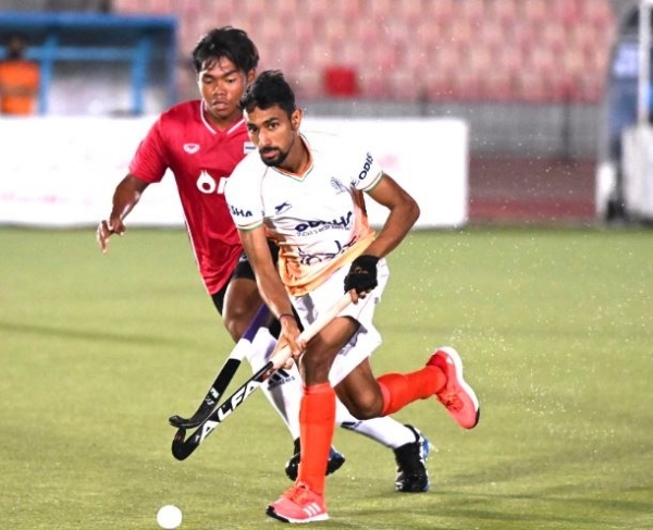 9-1 की शानदार जीत से भारत खिताबी दौर में खेलपथ संवाद सालालाह (ओमान). भारतीय हॉकी टीम ने बुधवार को यहां दक्षिण कोरिया को एकतरफा मुकाबले में 9-1 से हराकर जूनियर एशिया कप के फाइनल में प्रवेश किया। धामी बोबी सिंह ने हैटट्रिक लगाकर भारत के जीत के अंतर को बढ़ाया। वह ‘प्लेयर ऑफ द मैच’ चुने गए। धामी ने 31वें, 39वें और 55वें मिनट में गोल किया तो लाकरा सुनीत ने 13वें मिनट में भारत का खाता खोला। मैच के 19वें मिनट में हुंदल अर.......