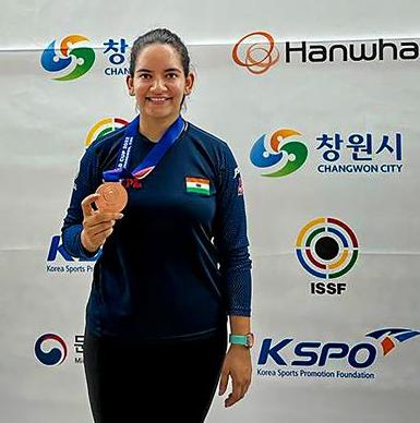 चांगवन। भारत की अंजुम मोदगिल ने रविवार को आईएसएसएफ निशानेबाजी विश्व कप की महिला 50 मीटर राइफल थ्री पोजीशन स्पर्धा में कांस्य पदक जीता। अंजुम फाइनल में 402.9 अंक के साथ तीसरे स्थान पर रहीं। उन्होंने नीलिंग में 100.7, प्रोन में 101.6 और स्टेंडिंग पोजीशन में 200.6 अंक जुटाए। जर्मनी की अन्ना जेनसन (407.7) ने स्वर्ण जबकि इटली की बारबरा गैमबारो (403.4) ने रजत पदक जीता। संजीव राजपूत, चैन सिंह और ऐश्वर्य प्रताप सिंह तोमर ने पुरुष थ्री पोजीशन .......