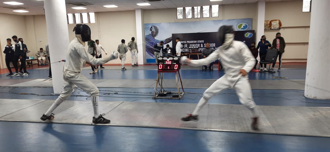 खुशी, सौरभ, प्रणय और हिमांशु ने भी जीता सोना राज्य स्तरीय फेंसिंग चैम्पियनशिप-2021 खेलपथ संवाद भोपाल। मध्यप्रदेश राज्य मार्शल आर्ट्स फेंसिंग अकादमी के खिलाड़ियों ने शानदार प्रदर्शन करते हुए छह स्वर्ण पदकों पर कब्जा जमाया। राज्य स्तरीय फेंसिंग चैम्पियनशिप-2021 का आयोजन खेल और युवा कल्याण विभाग के सहयोग से तात्या टोपे स्टेडियम में किया जा रहा है। चैम्पियनशिप में सब जूनियर, जूनियर और सीनियर वर्ग के मुकाबले खेले जा रहे हैं। .......