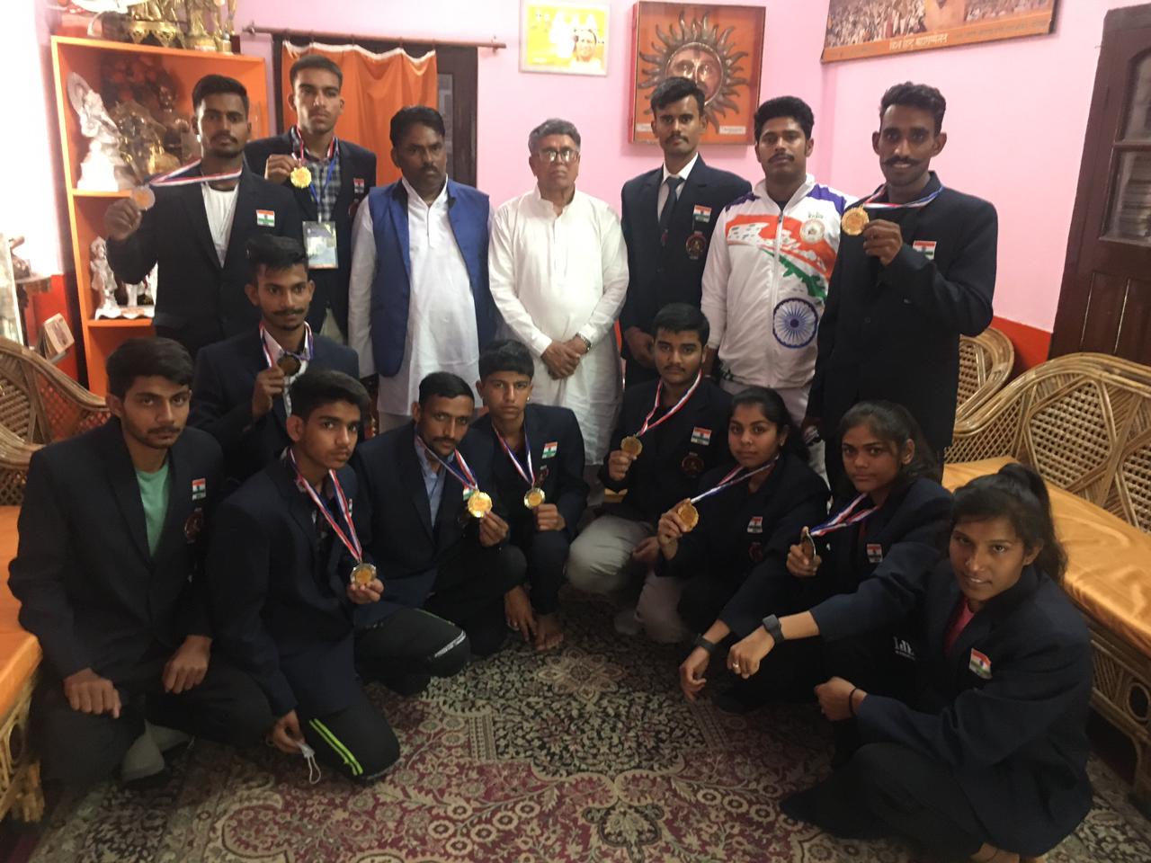 भारतीय खेल एवं शिक्षा परिषद के महासचिव धर्मेंद्र सिंह खिलाड़ियों के साथ की सौजन्य भेंट खेलपथ प्रतिनिधि जयपुर। विगत दिवस भारतीय खेल एवं शिक्षा परिषद के महासचिव धर्मेंद्र सिंह एडवोकेट खिलाड़ियों के साथ उत्तर प्रदेश के मुख्यमंत्री योगी आदित्यनाथ के निवास स्थान गोरखपुर पहुंचे। मुख्यमंत्री से तो इस प्रतिनिधिमंडल की मुलाकात नहीं हो सकी लेकिन उनके पीए द्वारिका प्रसाद तिवारी से सौजन्य भेंट में खेलों पर लम्बी चर्चा हुई। पीए तिवारी ने प.......