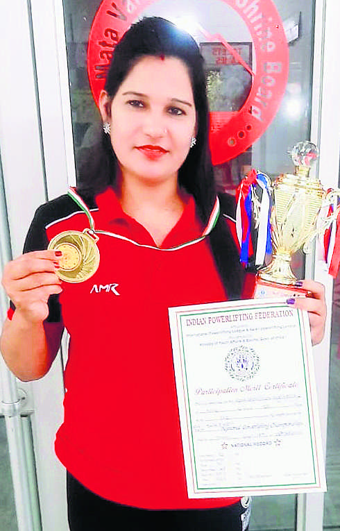 41 साल की उम्र में हासिल कर रहीं सफलता खेलपथ प्रतिनिधि सफीदों। गांव डिडवाड़ा की रेखा ने जम्मू-काश्मीर में आईपीएफ फेडरेशन द्वारा आयोजित नेशनल वेटलिफ्टिंग चैम्पियनशिप में गोल्ड मेडल झटका है। इस प्रतियोगिता में 41 वर्षीय रेखा ने 107 किलोग्राम की डेड लिफ्ट, 75 किलोग्राम की स्क्वाड और 50 किलोग्राम की बैंच प्रेस लगाकर गोल्ड मेडल प्राप्त किया। अब रेखा को यूएसए मे आगामी सितम्बर माह में निर्धारित कार्यक्रम में भाग लेने को उसका चयन किया गया है.......