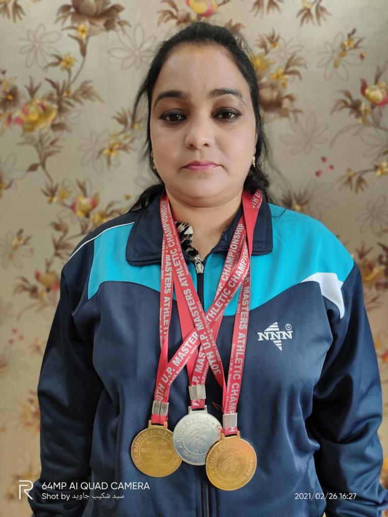 जेवलिन थ्रो और 100 मीटर हर्डल रेस में स्वर्ण तथा हैमर थ्रो में जीती चांदी खेलपथ प्रतिनिधि अमरोहा। उत्तर प्रदेश की राजधानी लखनऊ के उत्तर रेलवे स्टेडियम चारबाग में 24 और 25 फरवरी को हुई 30वीं उत्तर प्रदेश मास्टर्स एथलेटिक्स प्रतियोगिता में अमरोहा की एथलीट शुमायला जावेद ने दो स्वर्ण, एक रजत सहित तीन पदक जीतकर अपने दमखम का परिचय दिया। शुमायला जावे.......