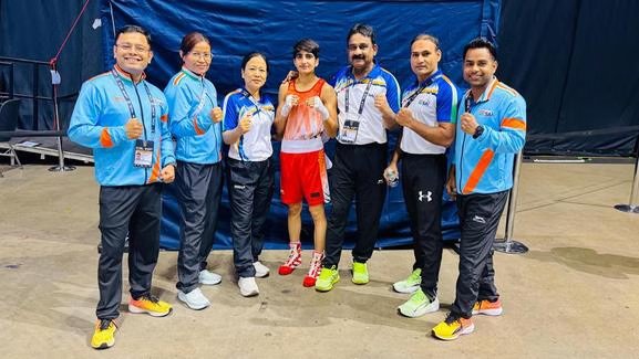 कोच विजय ने मैच से पहले मीनाक्षी को दिए थे गुरु मंत्र खेलपथ संवाद लिवरपूल। विश्व मुक्केबाजी प्रतियोगिता में शुक्रवार को शानदार प्रदर्शन करते हुए रोहतक जिले की बॉक्सर मीनाक्षी हुड्डा सेमीफाइनल में प्रवेश करके पदक पक्का किया। मीनाक्षी शनिवार को पदक का रंग बदलने के लिए उतरेगी। मीनाक्षी ने उत्कृष्ट प्रदर्शन करते हुए क्वार्टर फाइनल मैच में इं.......