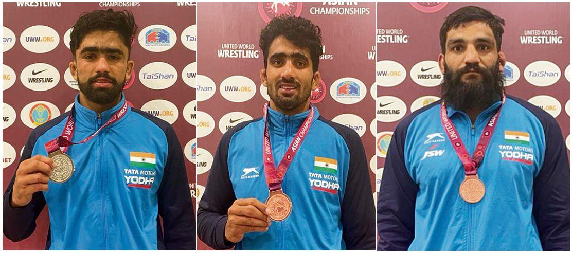 सीनियर एशियाई कुश्ती चैम्पियनशिपः देश को दिलाए तीन मेडल खेलपथ संवाद सोनीपत। कजाकिस्तान में सीनियर एशियाई कुश्ती चैम्पियनशिप के पहले दिन रविवार को सोनीपत के पहलवानों ने धूम मचा दी। गांव गुहणा के पहलवान रूपिन ने सिल्वर मेडल जीतकर देश का मान बढ़ाया तो गांव डबरपुर के पहलवान सुनील व जुआं के पहलवान नीरज ने ब्रांज मेडल देश की झोली में डाले। विजेता पहलवानों के घरों पर बधाई देने वालों का तांता लगा हुआ है। रविवार को कजाकिस्तान के अस्ताना .......