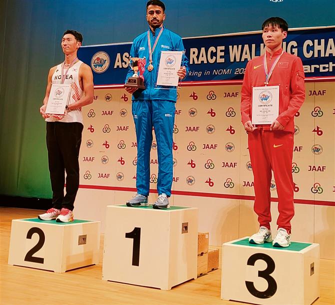 खेलपथ संवाद संगरूर। नोमी (जापान) में एशियन रेस वॉकिंग चैम्पियनशिप में भारत के एथलीट आकाशदीप सिंह ने 20 किलोमीटर पैदल चाल में स्वर्ण पदक जीता। पंजाब के खेल मंत्री गुरमीत सिंह मीत हेयर ने एथलीट आकाशदीप सिंह को इस उपलब्धि पर बधाई दी। उन्होंने कहा कि आकाशदीप सिंह का यह पहला अंतरराष्ट्रीय मुकाबला था। इस उपलब्धि के साथ एशियाई खेलों, विश्व चैम्पियनशिप और ओलम्पिक खेलों जैसे बड़े टूर्नामैंट के लिए उनका हौसला बुलंद होगा। काहनेके (बरनाला) के रहन.......