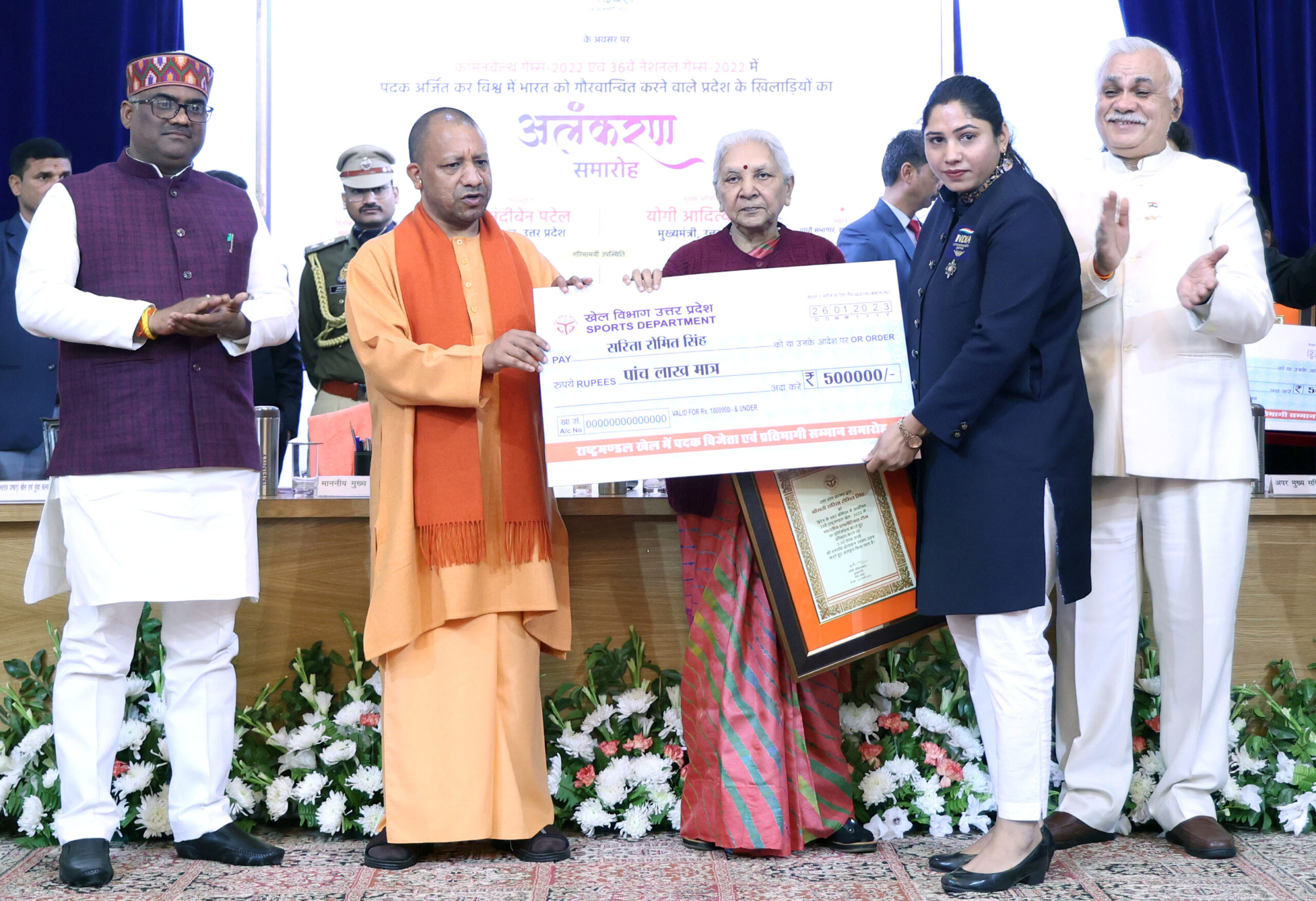 राष्ट्रीय खेलों के पदक विजेताओं का राज्यपाल और मुख्यमंत्री ने किया सम्मान योगी आदित्यनाथ को खिलाड़ियों ने बताई राज्य खेल अवॉर्डों में भेदभाव की सच्चाई खेलपथ संवाद लखनऊ। उत्तर प्रदेश दिवस के समापन अवसर पर गुरुवार को राजभवन में अलंकरण समारोह का आयोजन हुआ। इस दौरान कॉमनवेल्थ और नेशनल गेम्स में मेडल जीतने वाले खिलाड़ियों को राज्यपाल और मुख्यमंत्री द्वारा सम्मानित किया गया। इस अवसर पर कुछ खिलाड़ियों ने मुख्यमंत्री योगी आदित्यनाथ को.......